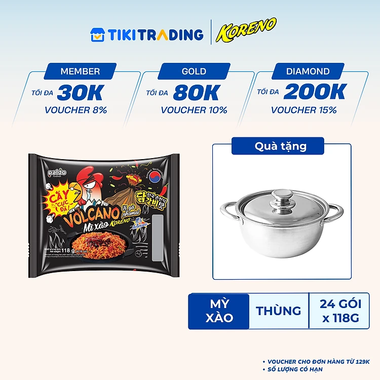 Thùng 24 Gói Mì Xào Koreno Vị Gà Phomai Volcano 118g