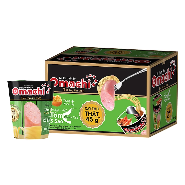 - Thùng 24 Hộp Mì Omachi Tôm Chua Cay 5 Sao - Có Thịt Thật (112g / Hộp) sử dụng nguồn nguyên liệu tươi ngon, bổ dưỡng, giúp bạn giải quyết bữa ăn một cách nhanh chóng trong những ngày bận rộn. Sản phẩm có thiết kế dạng ly nhựa tiện lợi, không mất thời gian chế biến, dọn dẹp mà vẫn giúp bạn có món ăn ngon.