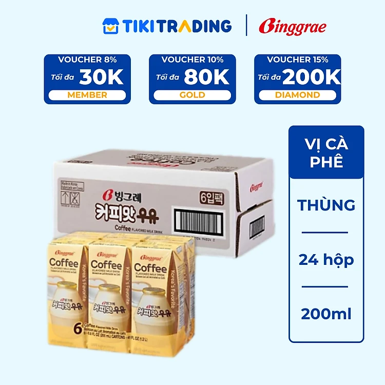 Thùng 24 hộp Sữa vị cà phê 200ml nhãn hiệu Binggrae