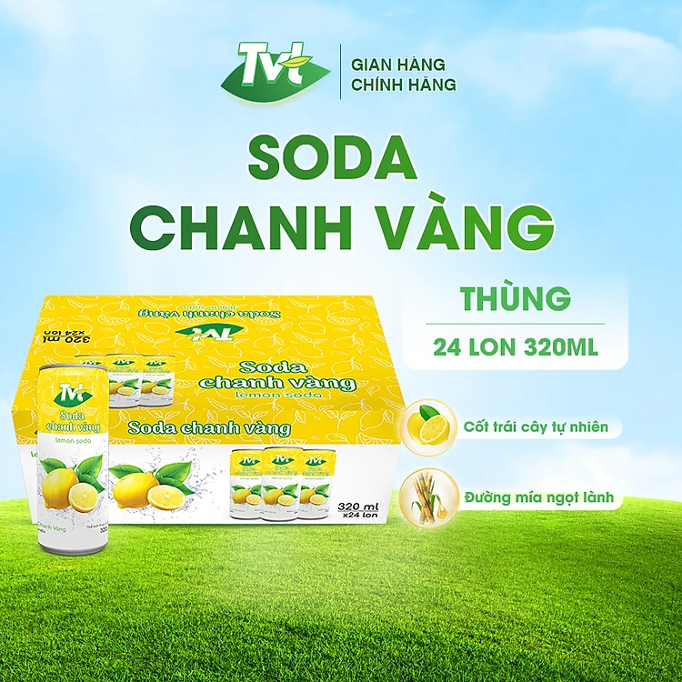 [Thùng 24 lon 320ml] Soda Chanh VàngTVT - Nước cốt chanh vàng tự nhiên cùng soda nhẹ nhàng