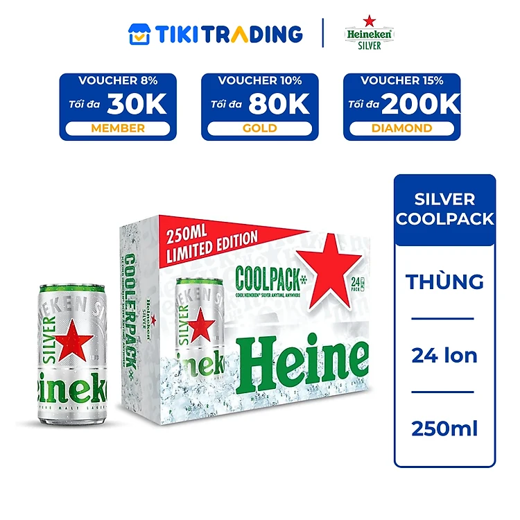 Thùng 24 lon bia Heineken Silver Coolpack 250ml/lon