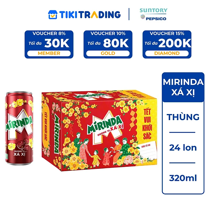 Thùng 24 Lon Nước Ngọt Có Gas Mirinda Xá Xị (320ml/Lon)