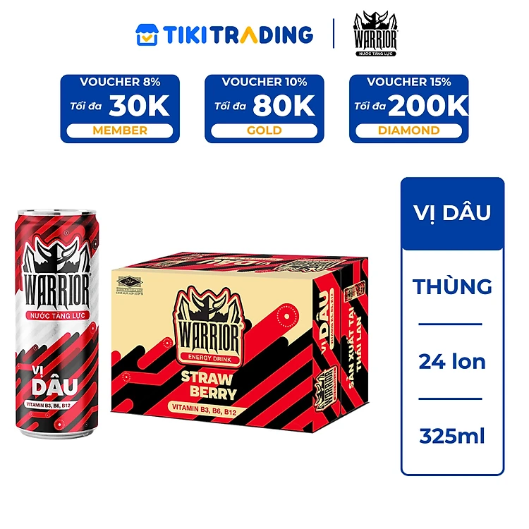 Thùng 24 Lon Nước Tăng Lực Có Gas Warrior Vị Dâu 320ml