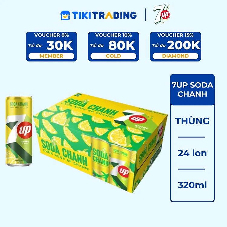 Thùng 24 Lon Nước Uống Có Gaz 7Up Soda Chanh (320ml/lon)
