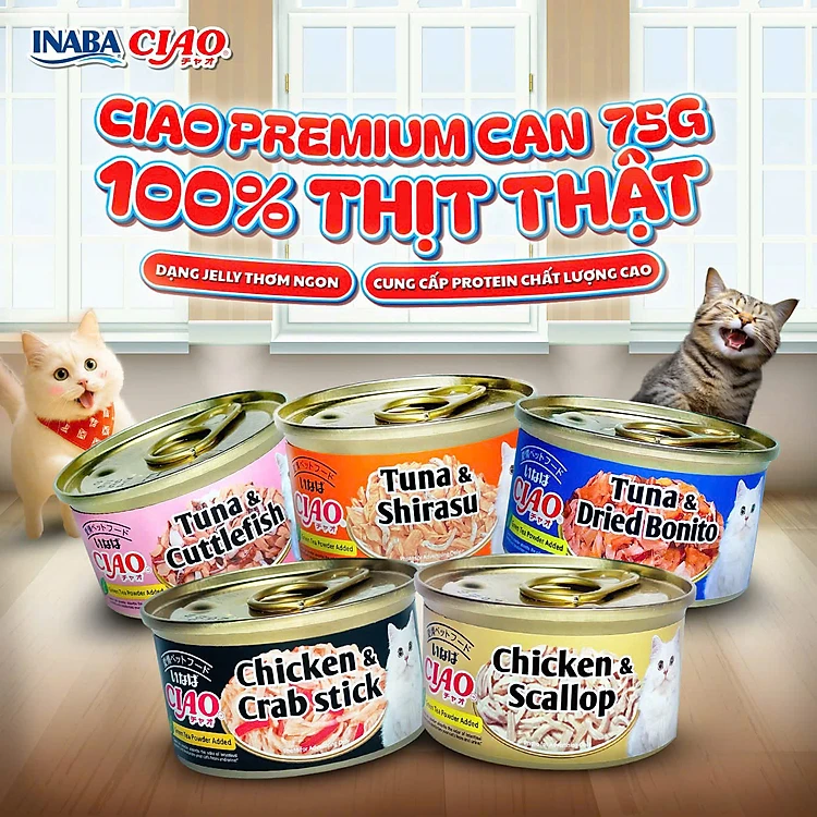 [ THÙNG 24 LON ] PATE CHO MÈO CIAO PREMIUM CAN 75g BỔ SUNG PROTEIN 100% THỊT THẬT