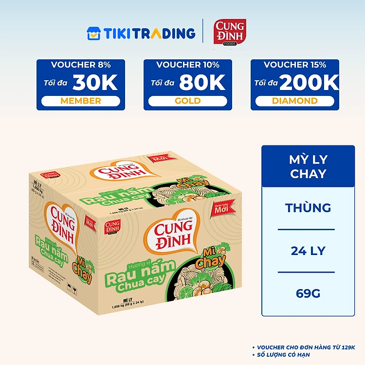 Thùng 24 Ly Mì Chay Cung Đình Rau Nấm Chua Cay (69g / Ly)