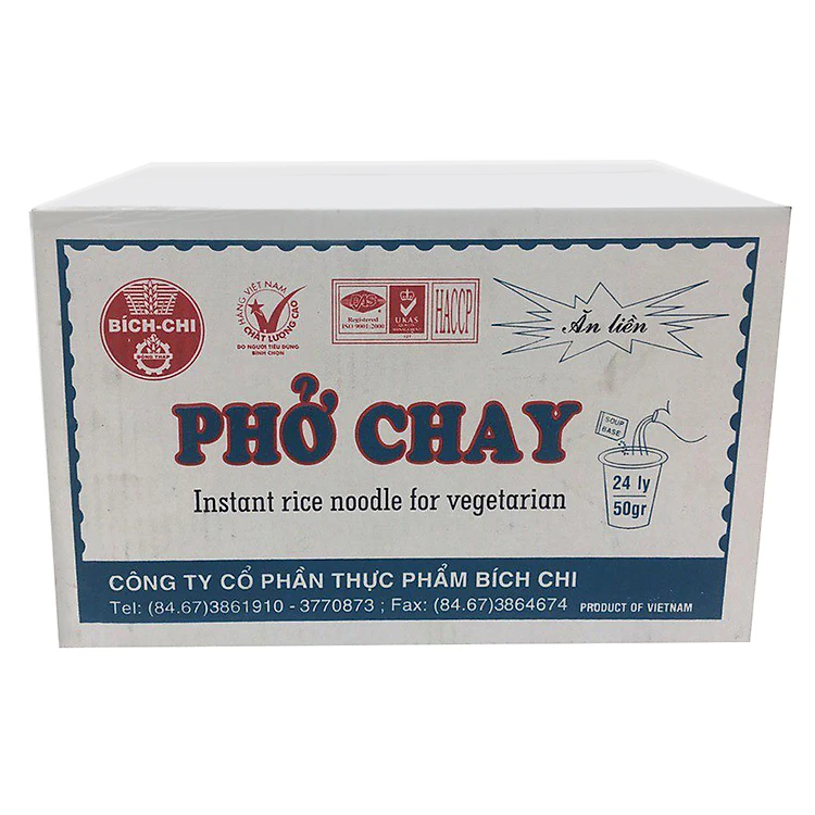 Thùng 24 Ly Phở Ăn Liền Chay Bích Chi (50g/Ly) với hương vị thơm ngon tuyệt vời mang đến món ăn yêu thích đem lại cho bạn những phút giây thưởng thức thú vị mỗi ngày.