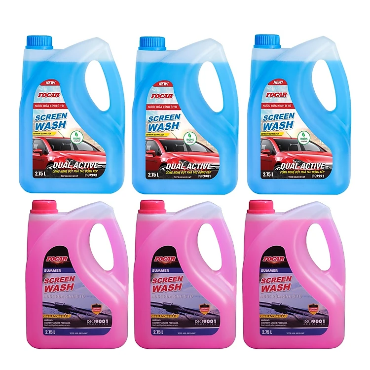 Thùng 3 can nước rửa kính FOCAR Screen Wash 2.75L (Xanh) + 3 can nước rửa kính FOCAR SUMMER 2.75L (Hồng)