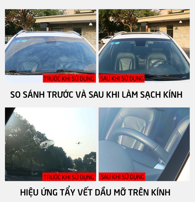 - Loại bỏ nhanh chóng các vết bẩn trên bề mặt kính chắn gió ô tô.