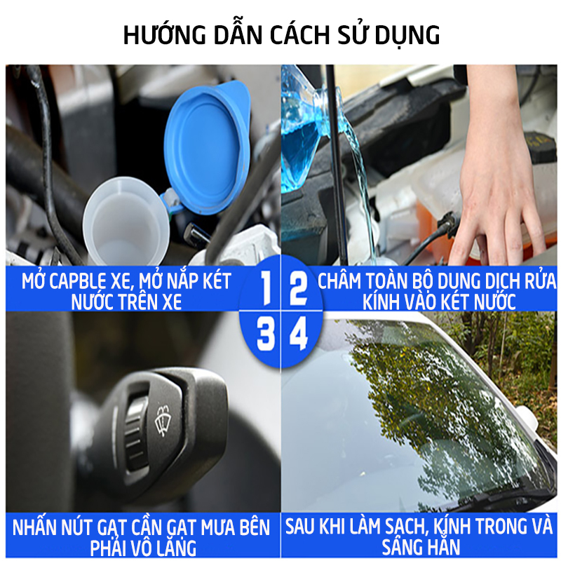 - Đổ trực tiếp vào bộ phận chứa nước rửa kính của xe