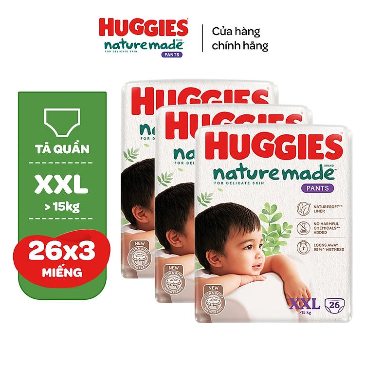 Thùng 3 gói Tã/Bỉm quần Huggies Platinum NatureMade M58/ L44/ XL38/ XXL26