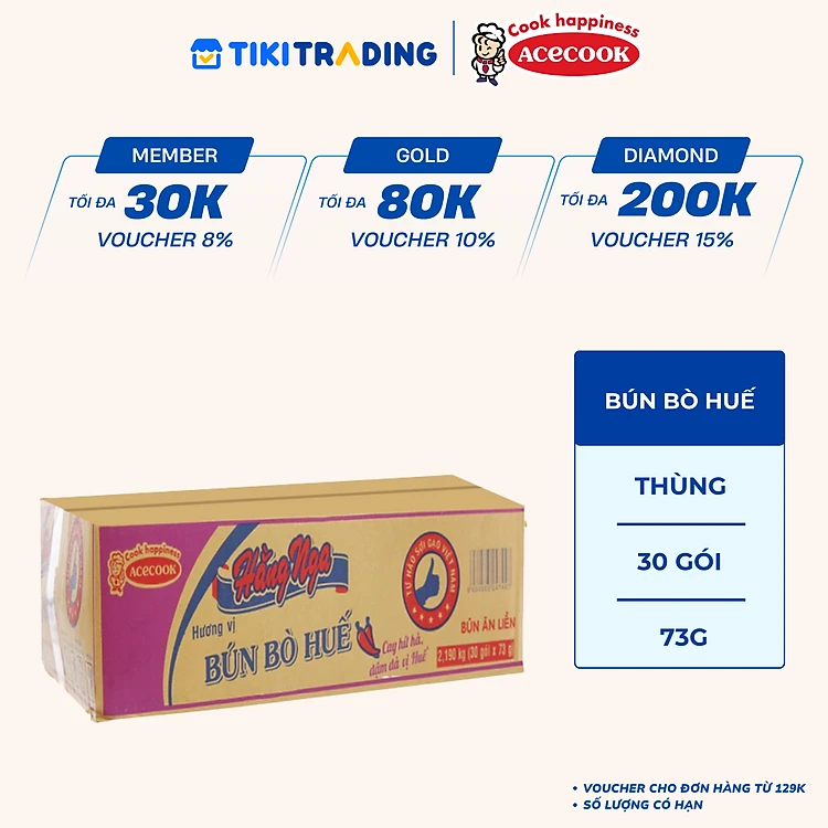 Thùng 30 Gói Bún Hằng Nga Hương Vị Bún Bò Huế Acecook