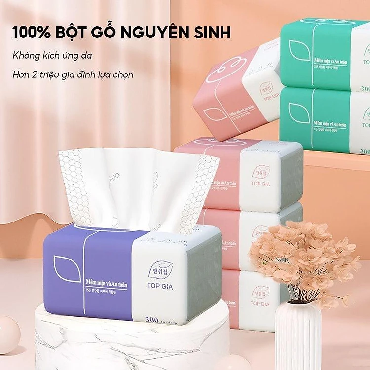 Thùng 30 gói giấy ăn rút Topgia 3 màu cao cấp 4 lớp dày dặn, mềm mịn