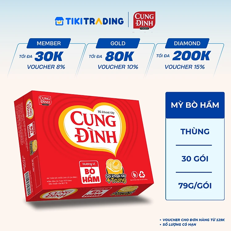 Thùng 30 Gói Mì Khoai Tây Cung Đình Hương Vị Bò Hầm