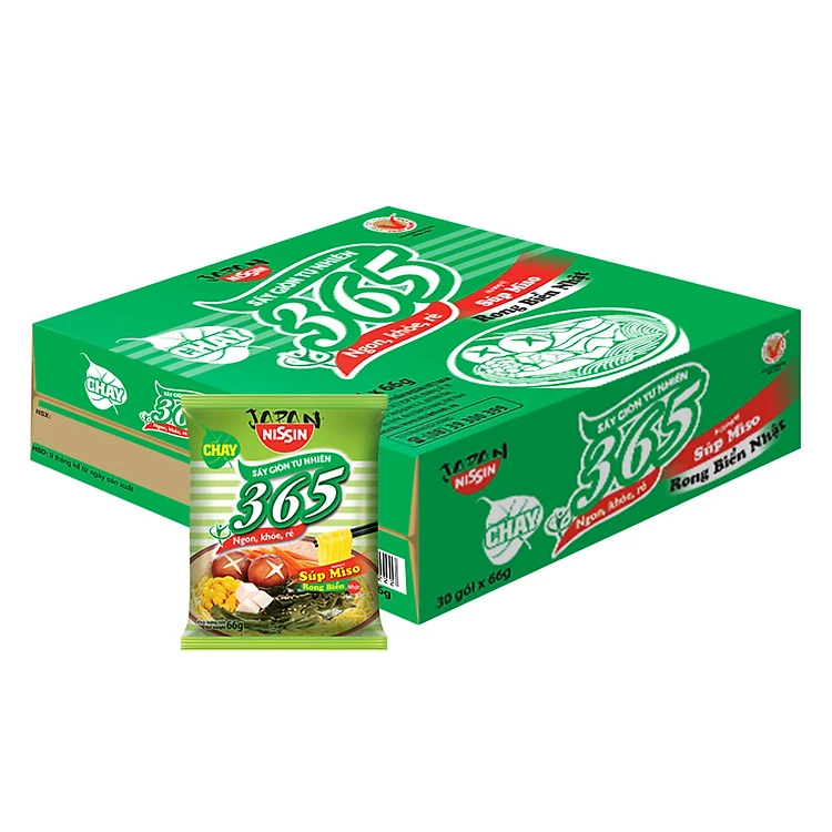 Thùng 30 Gói Mì Không Chiên Chay Nissin 365 - Hương Vị Súp Miso Rong Biển Nhật Bản (66g / Gói)
