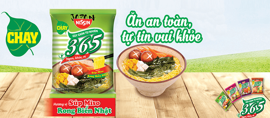 • Với công nghệ đột phá từ Nhật Bản, mì 365 hương vị súp Miso rong biển Nhật Bản độc đáo với nước súp thanh ngọt đậm đà từ Miso và rong biển, hoà quyện cùng hương thơm của hạt mè rang giòn, sẽ mang đến cho bạn một trải nghiệm ẩm thực chay nhẹ nhàng, thanh thoát.