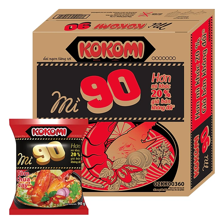 Thùng 30 Gói Mì Kokomi Đại 90 Tôm Chua Cay (30 Gói X 90g)