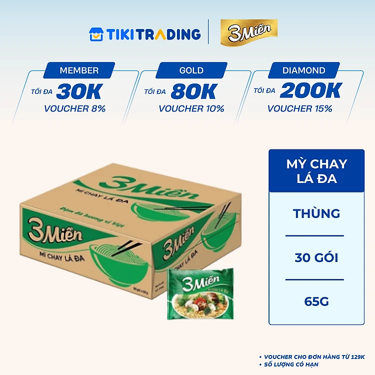 Thùng 30 Gói Mì Reeva 3 Miền Chay Lá Đa 65G