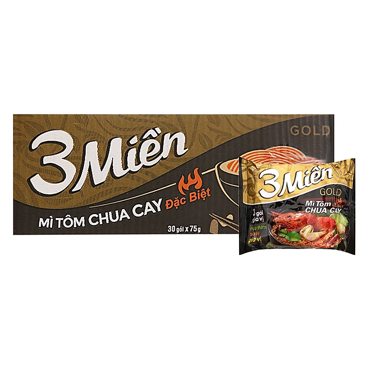 Thùng 30 Gói Mì Reeva 3 Miền Gold Tôm Chua Cay Đặc Biệt 75G