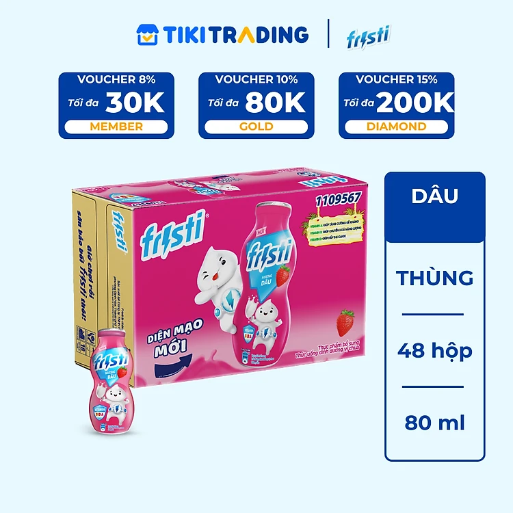Thùng 48 chai sữa chua uống hương dâu Fristi 80ml