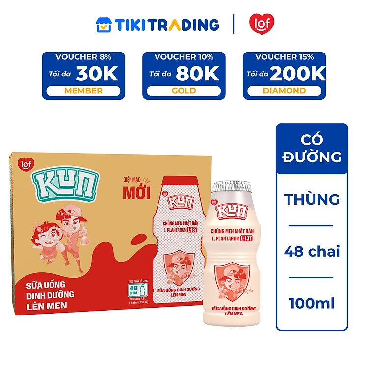 Thùng 48 chai Sữa chua uống KUN dinh dưỡng lên men Có đường 100ml
