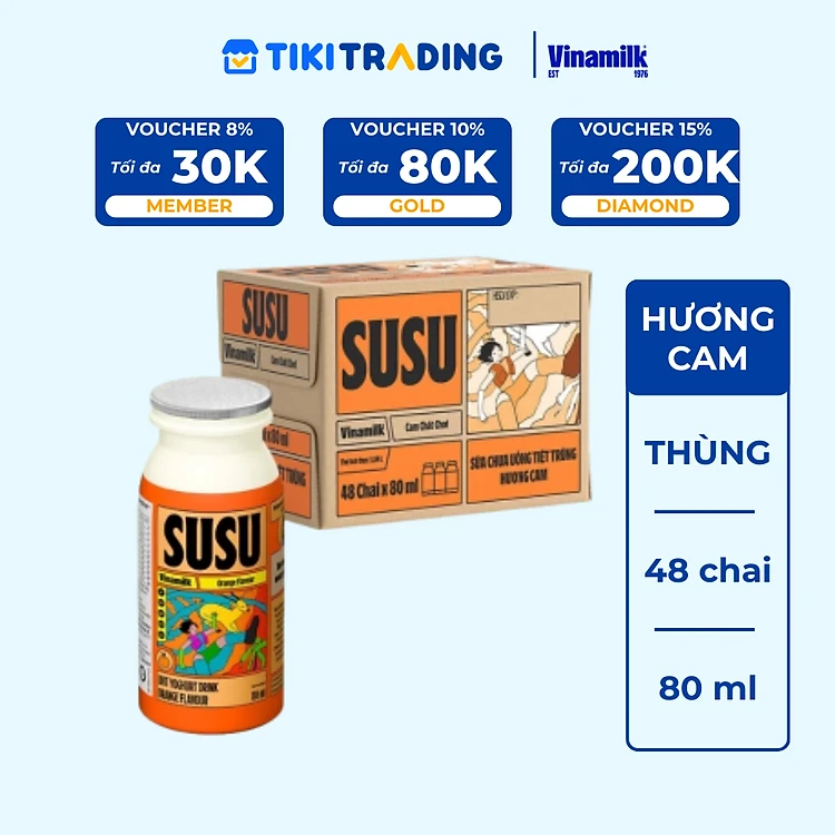 Sữa chua uống hương cam Vinamilk Susu - Thùng 48 chai 80ml