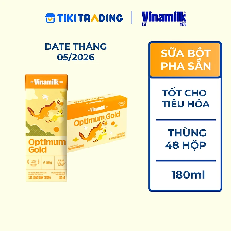 Thùng 48 Hộp Sữa Bột Pha Sẵn Vinamilk Optimum Gold 180ml
