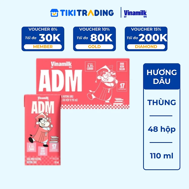 Thùng 48 Hộp Sữa dinh dưỡng Hương Dâu Vinamilk ADM (110ml)