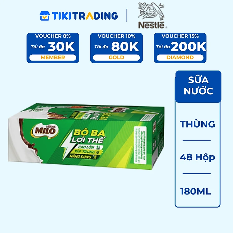 Thùng 48 Hộp Sữa Nestlé MILO Nước (180ml / Hộp)