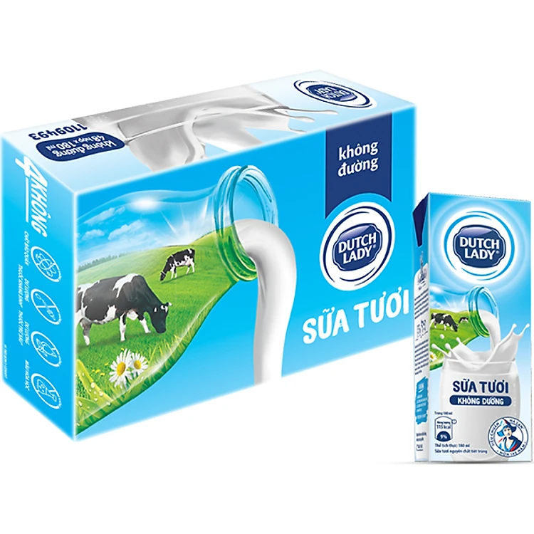 Thùng 48 Hộp Sữa Tươi Tiệt Trùng Dutch Lady Cô Gái Hà Lan Không Đường (48X180ml)