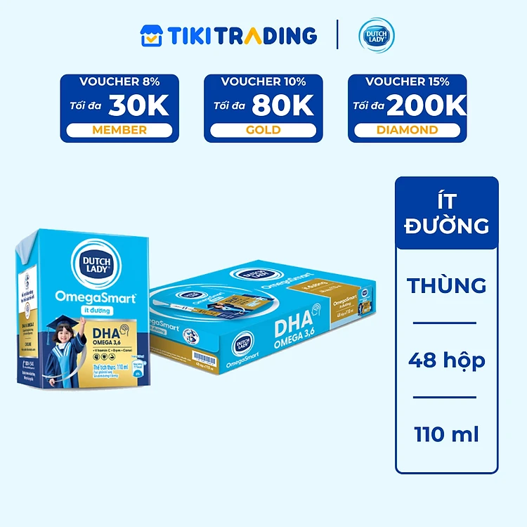 Thùng 48 hộp Sữa Dinh Dưỡng Dutch Lady OmegaSmart Ít Đường 110 ml