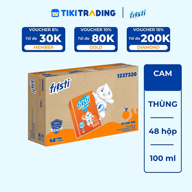 Thùng 48 hộp thức uống từ sữa chua lên men tự nhiên hiệu Fristi 100ml