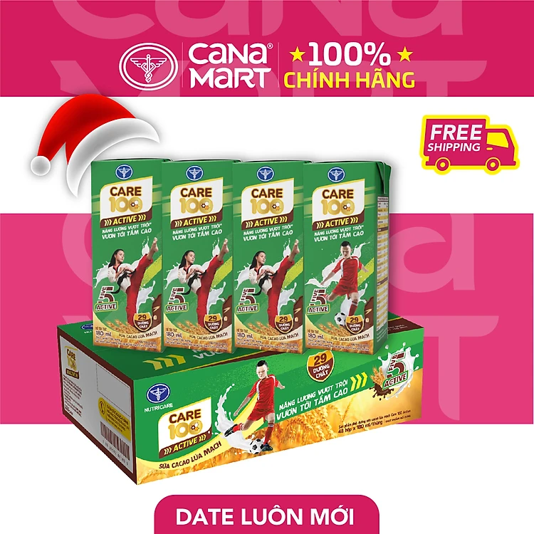 Thùng sữa nước ca cao lúa mạch Nutricare Care 100 Active giúp trẻ phát triển chiều cao (180ml)