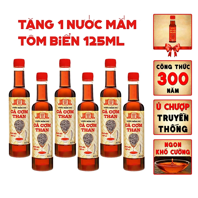 Thùng 6 chai nước mắm nhỉ cá cơm than Làng Chài Xưa 525ml/chai sánh đặc thịt cá 300 năm truyền thống