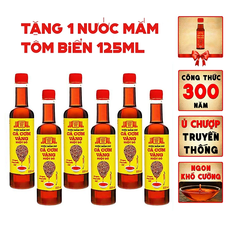 Thùng 6 chai nước mắm nhỉ cá cơm vàng ruột đỏ Làng Chài Xưa 525ml/chai cá ngon vùng nước trồi 300 năm truyền thống