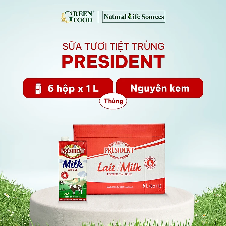Thùng 6 Hộp Sữa tươi tiệt trùng nguyên kem cao cấp President không đường | Hộp 1L - Nhập khẩu chính hãng từ Pháp