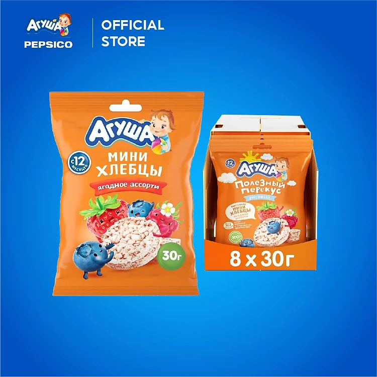 Thùng 8 gói Bánh ăn dặm Agusha các vị hoa quả (30g) dành cho bé từ 12 tháng trở lên