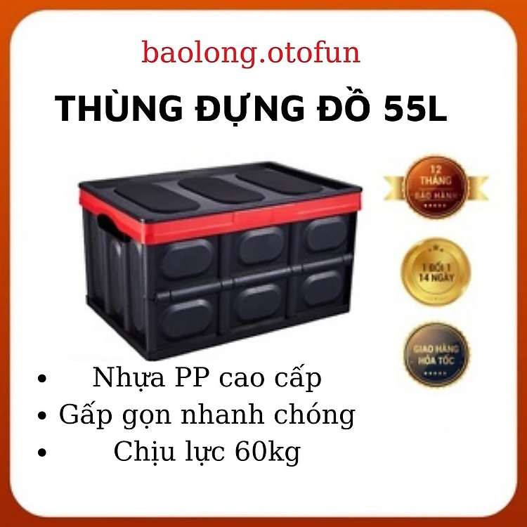 Thùng đựng đồ cốp xe xếp gọn dung tích 55L tiết kiệm không gian