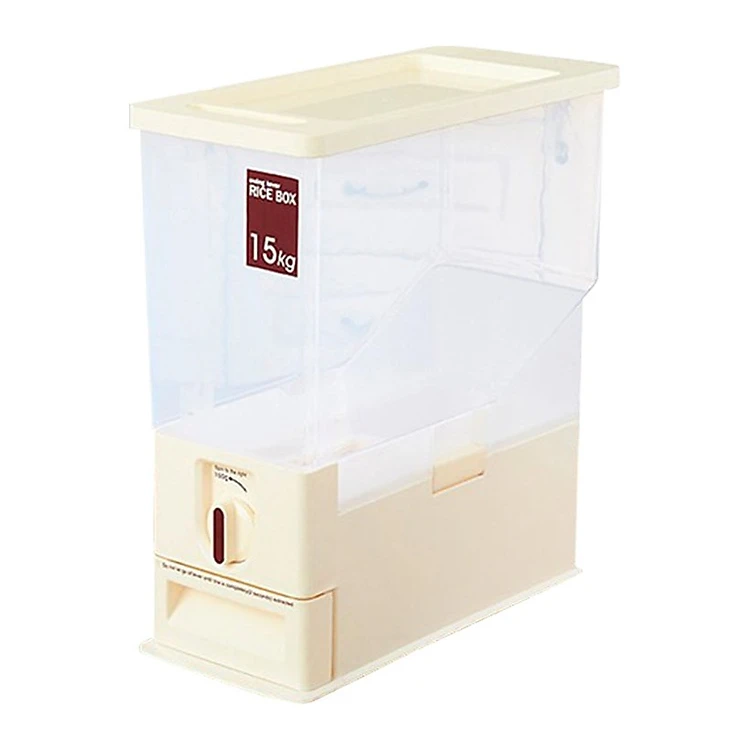 - Thùng nhựa trong suôt dễ dàng theo dõi lượng gạo bạn lấy ra,