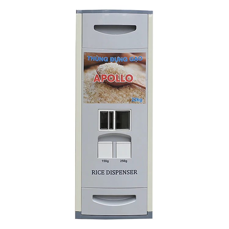 - Thùng Đựng Gạo Thông Minh Apollo NV - 22 - Xám Nhạt (22kg) có chức năng đong gạo thông minh cực kỳ tiện dụng chỉ cần nhấn nút rút khay là có đủ lượng gạo cho cả gia đình giúp bạn yên tâm sử dụng kể cả khi tay đang ướt.