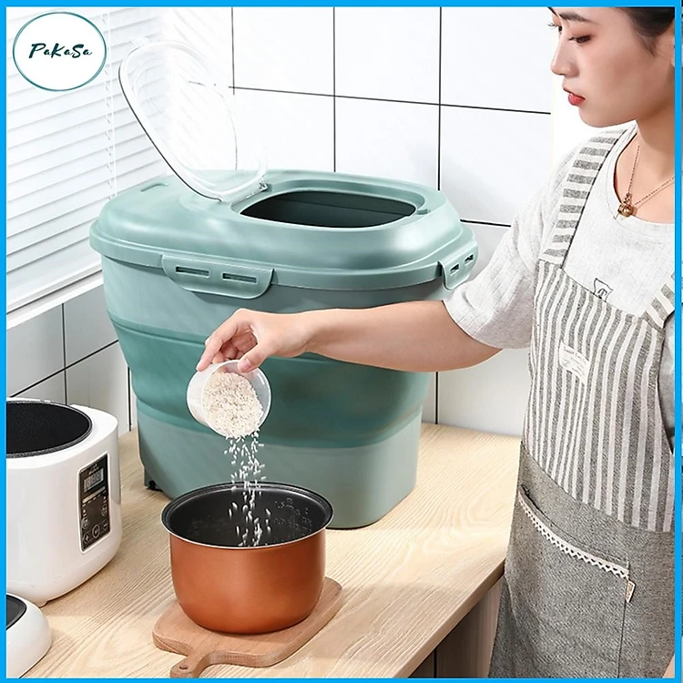Thùng /Hộp Đựng Gạo 25kg Chống Côn Trùng Có Bánh Xe - Có Thể Xếp Gọn - Chọn Màu ( Tặng Kèm Dụng Cụ Đong Gạo ) - Hàng Chính Hãng