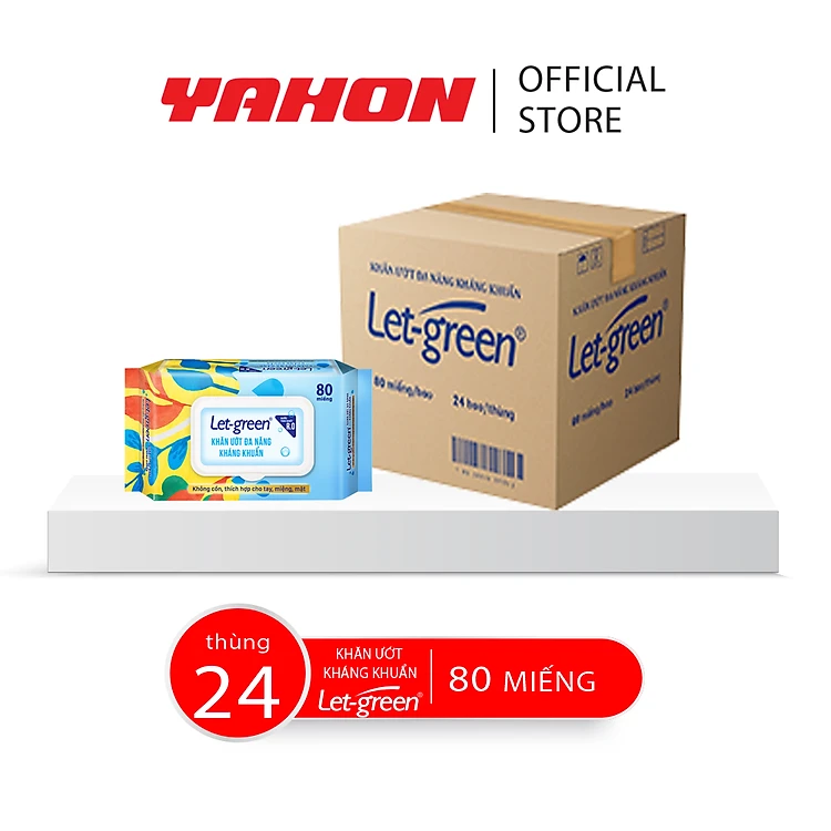 Thùng Khăn Ướt Kháng Khuẩn LET-GREEN 80 Miếng/Bao, 24 Bao/Thùng