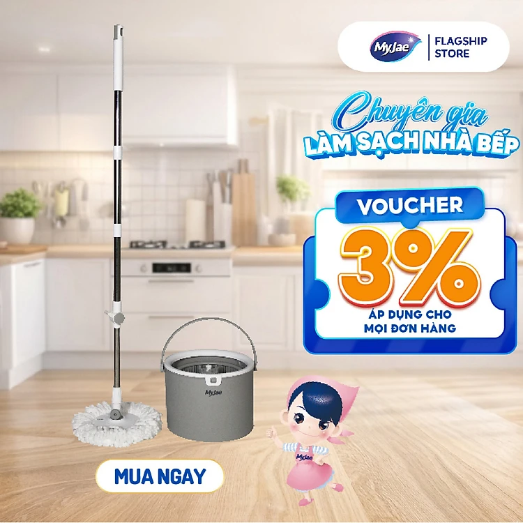 Thùng Lau Nhà Tròn MyJae Tiện Lợi Thông Minh Giặt Vắt 2 Trong 1
