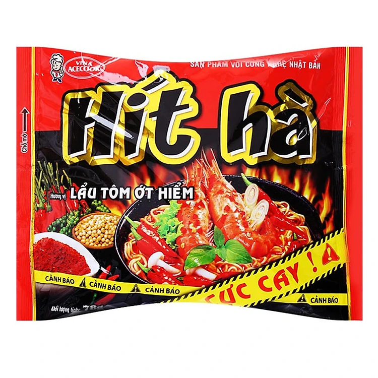 • Hương vị thơm ngon: Mì gói ăn liền Hít Hà với hương vị lẩu tôm ớt hiểm thơm ngon, cay nồng, kích thích vị giác và thử thách khả năng ăn cay của bạn.