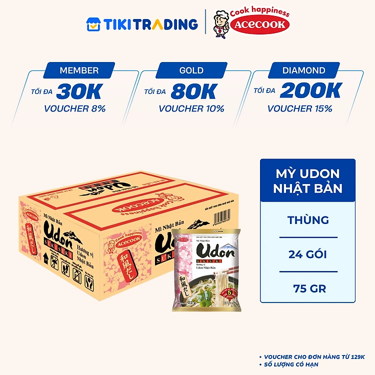 Thùng Mì Gói Udon Sưki Sưki Hương Vị Udon Nhật Bản (24 Gói x 75g)