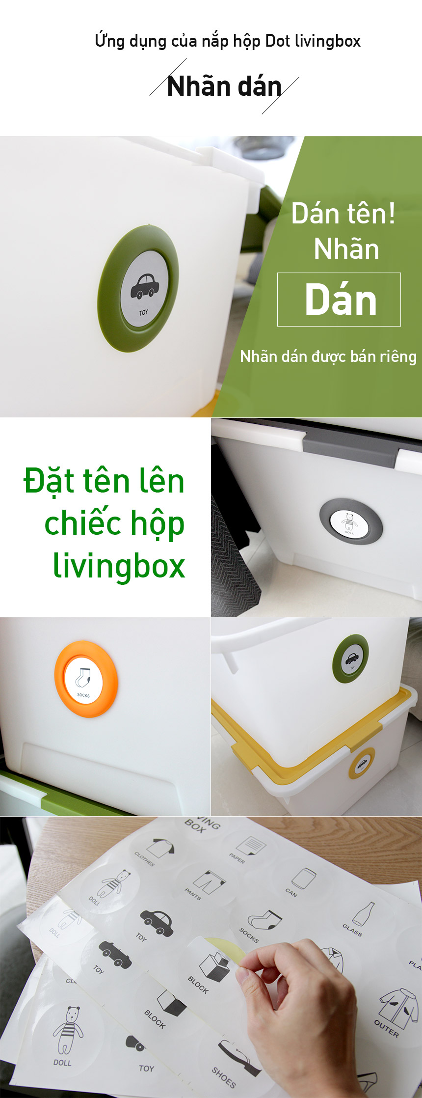 Ứng dụng của nắp hộp Dot livingbox phía ngang hông là dán tên riêng lên Nhãn dán
