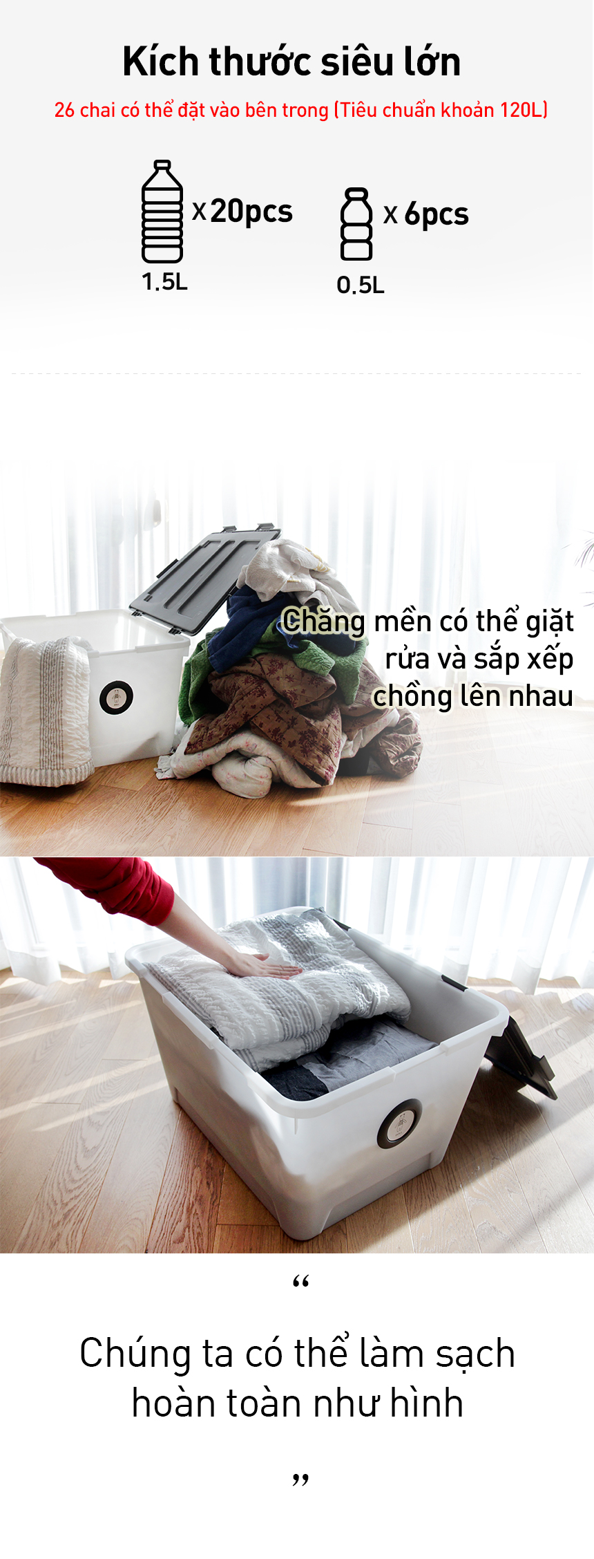 Thùng nhựa vuông đựng đồ phong cách Hàn Quốc