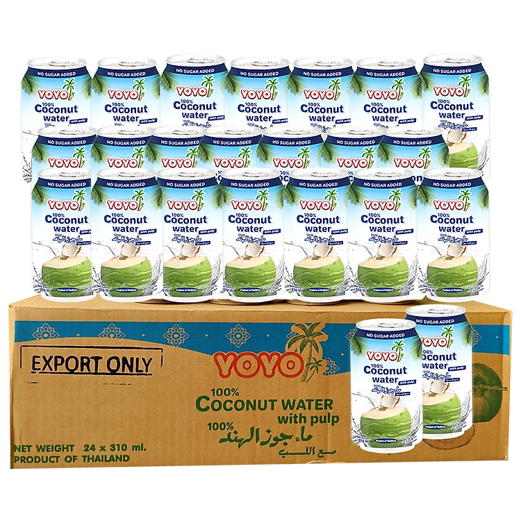 Thùng nước dừa xiêm có cơm dừa 24 lon 310ml YOYO 100% COCONUT WATER WITH PULP - NO SUGAR ADDED