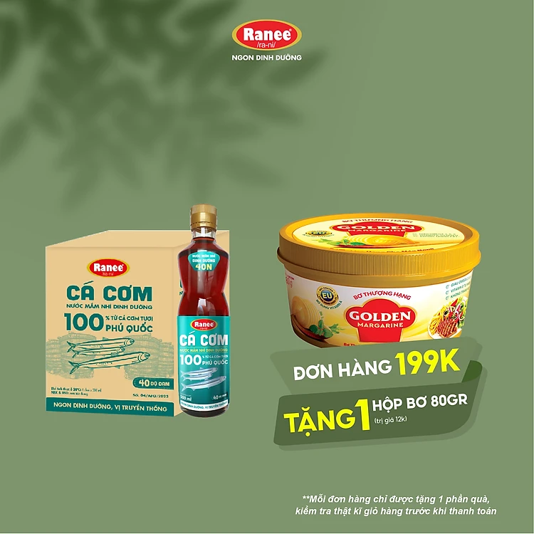 {Đơn 199k tặng hộp bơ 80g} Thùng nước mắm nhĩ dinh dưỡng Ranee cá cơm 40N 500ml