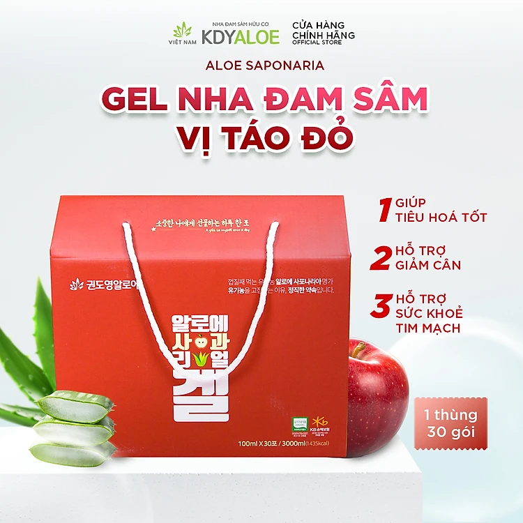 NƯỚC NHA ĐAM SÂM TÁO HỮU CƠ HỘP 30 GÓI HỖ TRỢ TIÊU HÓA